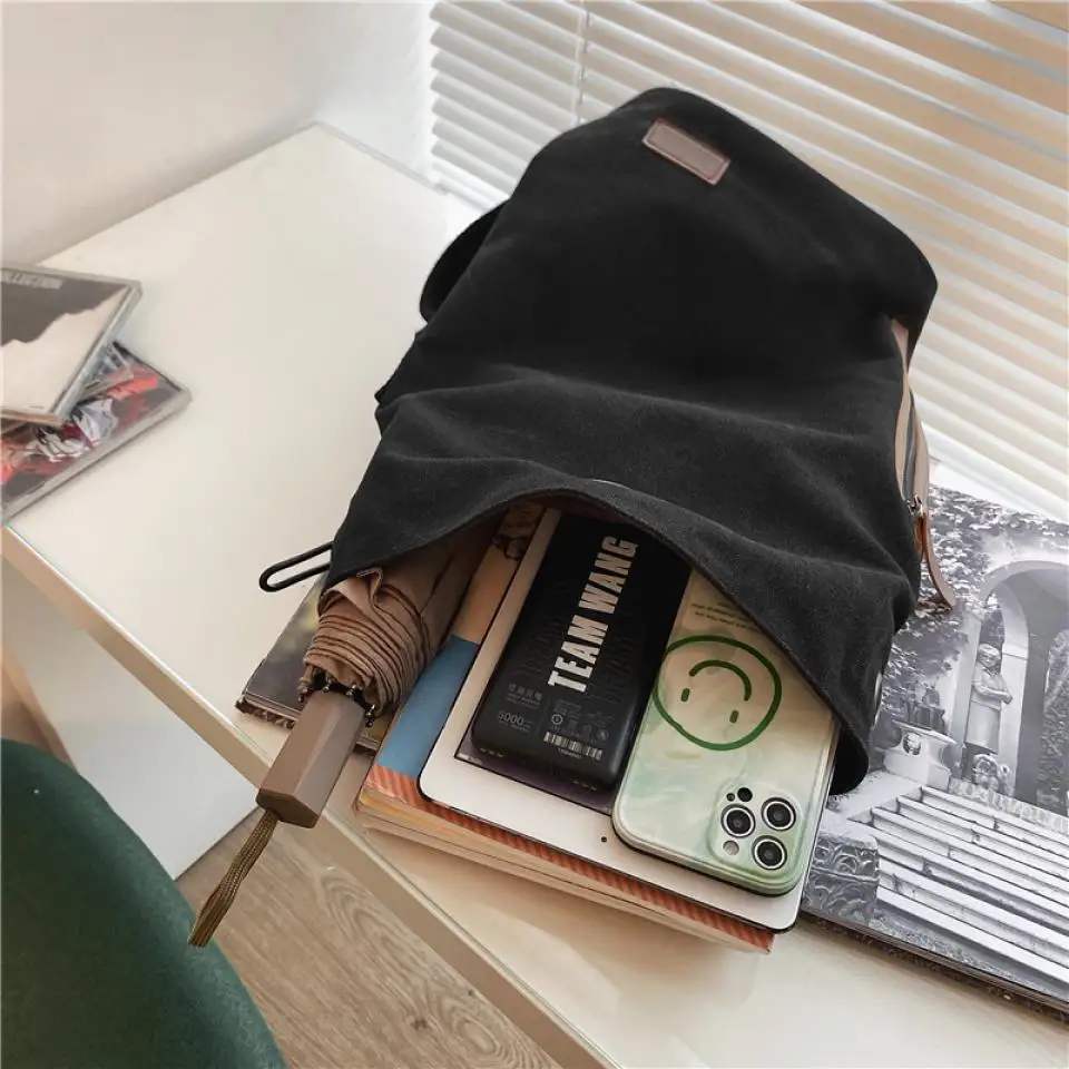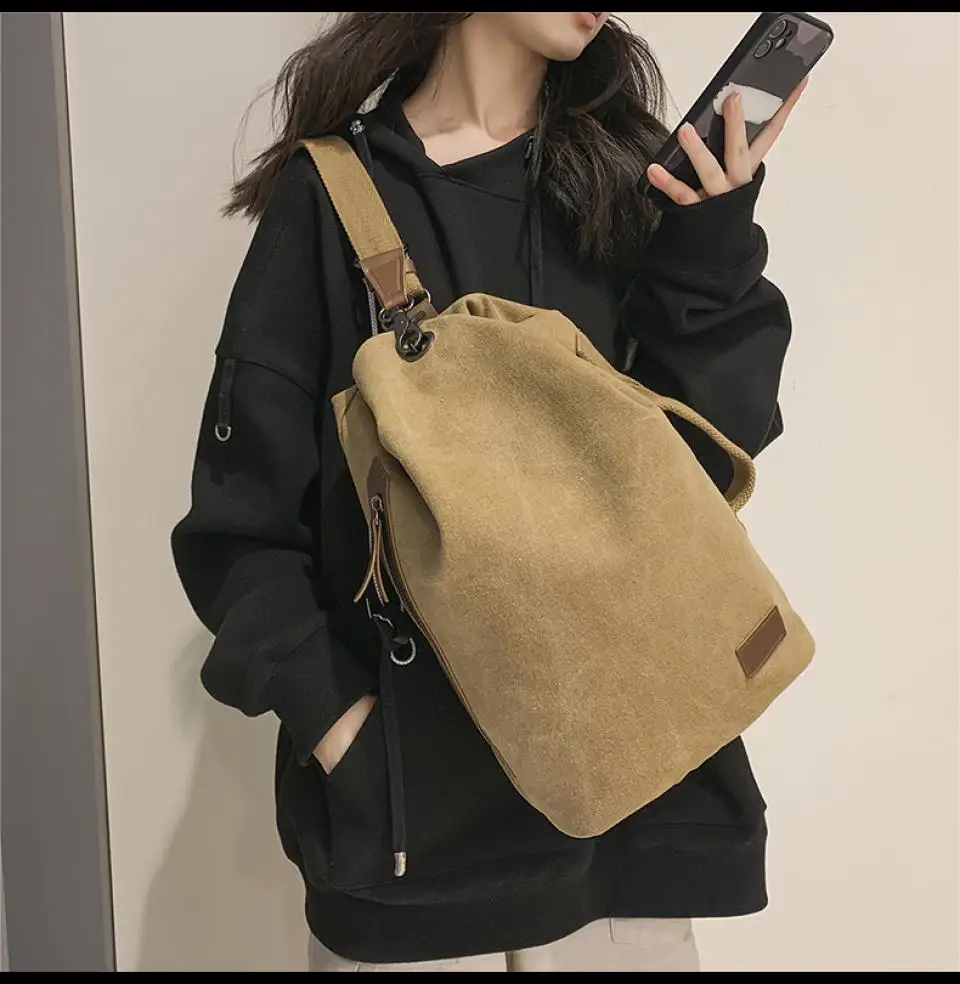 Spacious & Organized: The Canvas Bag offers a generous capacity, perfect for storing your laptop, notebooks, headphones, and other essentials. Keep your belongings secure and well-organized, whether you're heading to work, school, or out for a night on the town.