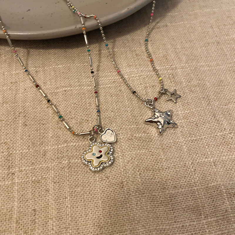 Color Beaded Pendant Clavicle Necklace