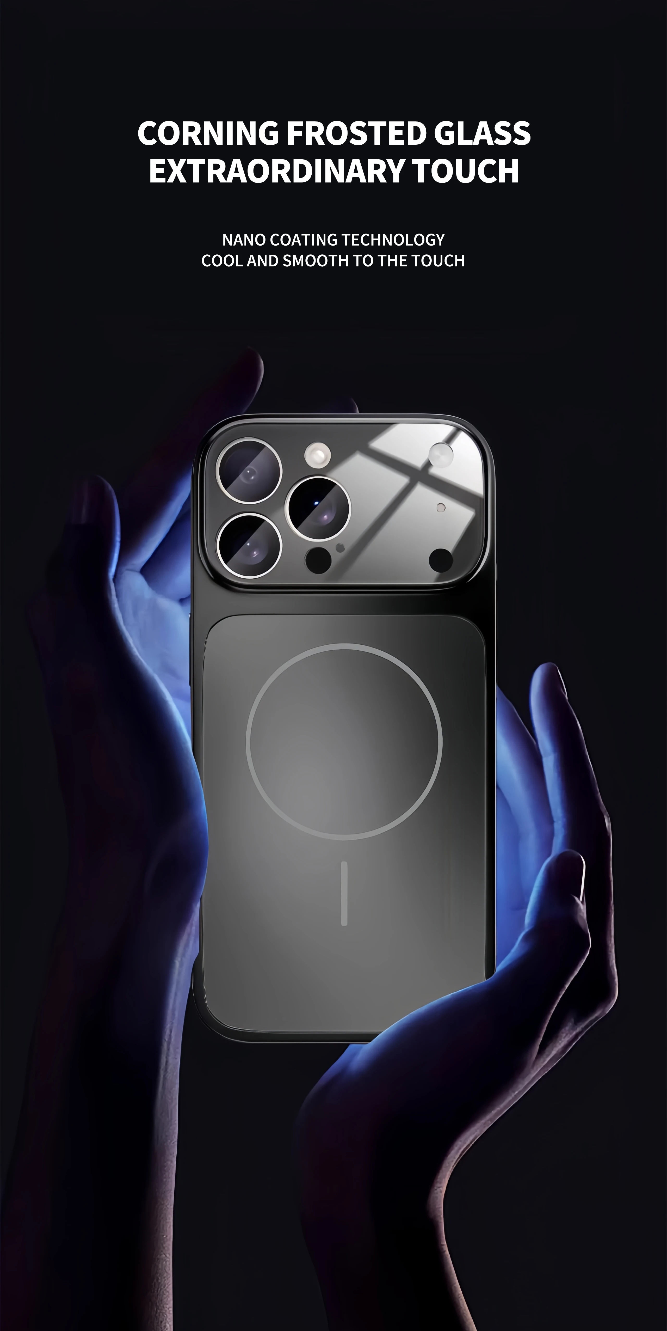 The Corning Frosted Glass iPhone Case combines luxury glass aesthetics with unmatched protection. With Corning glass both on the back and over the camera, reinforced PC hard shell, and built-in MagSafe magnets, this case doesn’t just protect your phone — it elevates it.